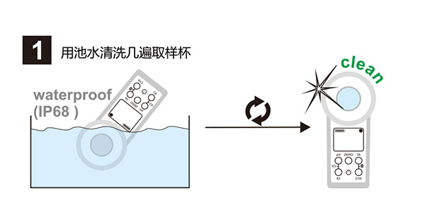 儀器伸入泳池水面20公斤以下,取10ml水樣
