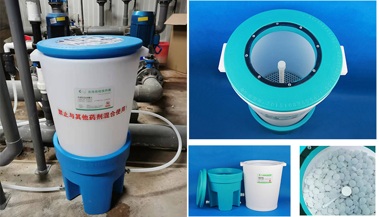 升級版游泳池投藥裝置是固液分離、即用即溶的投藥桶。它采用的固液分離、即用即溶、桶內負壓、水隔式密封等技術實現全自動化投藥。
