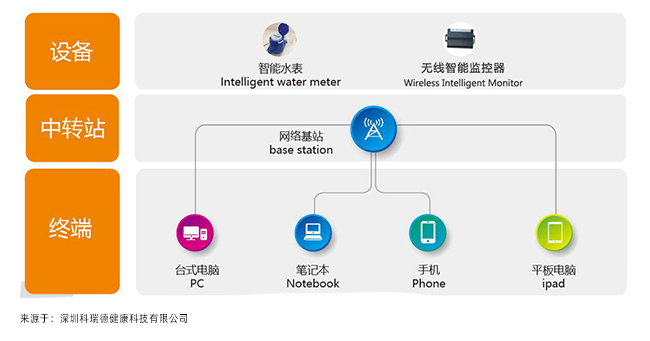 ? ? “智能水表+無線智能監控器”是安裝于游泳場館的監測設備;“數據中心”是用于接收、儲存及處理補水數據的網絡監控平臺。監測設備通過自帶的無線網絡將監測數據發送到我們的網絡監控平臺,平臺接收數據后進行儲存、分析及判斷,不合格可以向指定的用戶發送報警信息。監管部門或用戶可以通過電腦、手機等終端查看及接收報警信息。