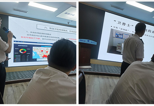 ? ? ? 為了能夠更好的將互聯網技術應用到泳池水質監管中,于2022年05月27日,下午深圳市各個區衛生監督部門,包括寶安、龍華、龍崗、南山、光明、羅湖、鹽田、大鵬等派了相關負責人,來到深圳灣體育中心游泳場館,實地考察及參觀指導學習衛普士水質在線監測系統。