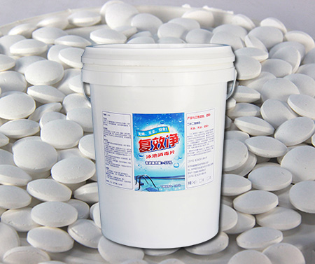 第三:新型的二水二氯異氰尿酸鈉消毒片,品牌名稱為復效凈泳池消毒片,如下圖: