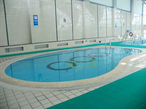 順流式:順流式采用泳池兩側池壁進水,池底深端回水的循環方式,詳細做法是:在兩側每條泳道線正下方池壁的正中心設置進水口,在池底深端設置若干回水口,進水口的數目是泳道線數目的2倍,回水口數目即是泳道線的數目。順流式實際上是模擬天然界河流的運動方式,實現處理過的水推動著使用過的水(即新水推舊水)進入水處理設備,從而避免了新水與舊水的混合。