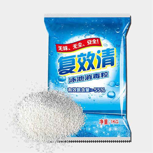 復效清泳池消毒粒與消毒粒相比,有很大的優勢,它的氯味很輕,無粉塵,性質比較穩定,溶解快,不會產生泡沫及殘渣,有效氯能夠被充分利用,另外它對水的pH值影響小,而含氯消毒粒則會降低水的pH值,用后需使用pH升高劑來調節pH值。