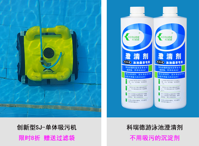 總之,只要做到以上這些,泳池水質基本就沒有什么問題了。而且此為簡單,且省時省力的游泳池水處理方式。使用游泳池全自動吸污機,可以讓整個泳季不用再下沉淀劑,不用人工勞累的吸污。其他一些輔助性的,如果想了解,可以聯系我們哦!